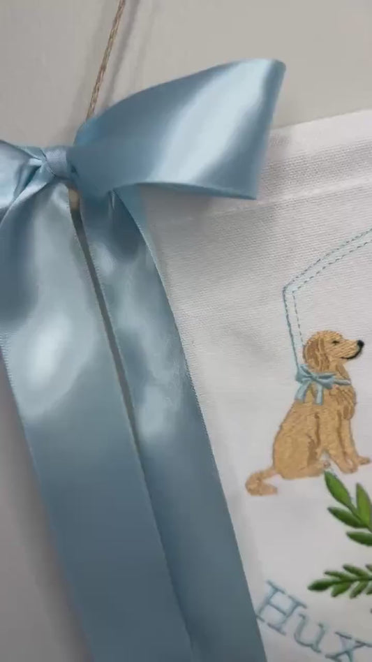 Golden Retriever Laurel Embroidery Design: Dog Banner Embroidery Crest Frame (Digital Download)
